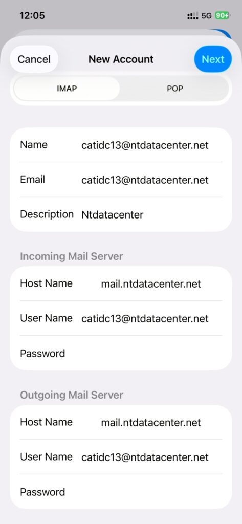ขั้นตอนการตั้งค่าอีเมล์บน iPhone(IOS) แบบ IMAP