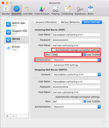 Setting Port: 143 or 993